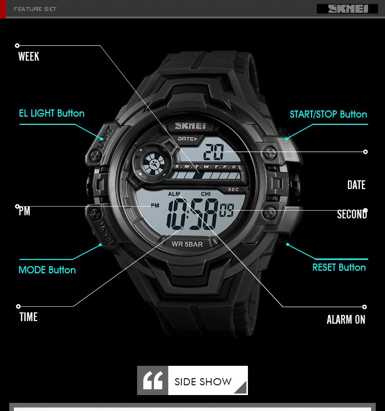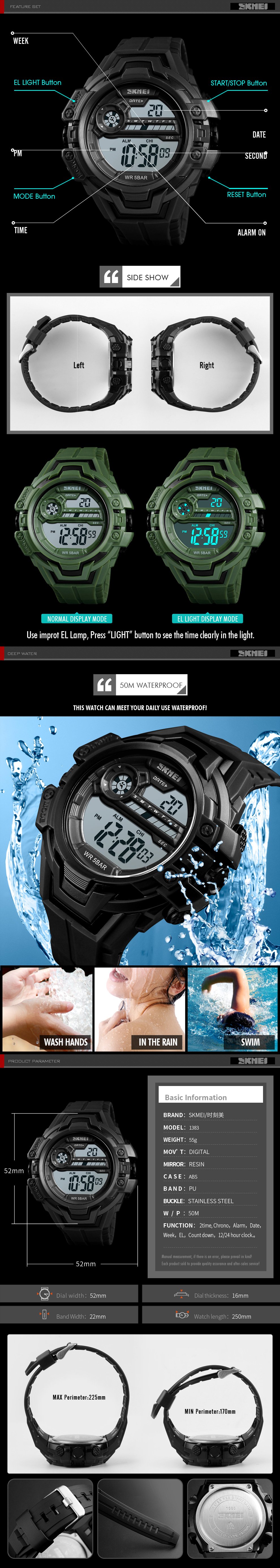 The SKMEI 1383 is a rugged waterproof daily watch with a reliable 50 m rating for splashes, rain and handwashing, ideal for everyday life and light water exposure.