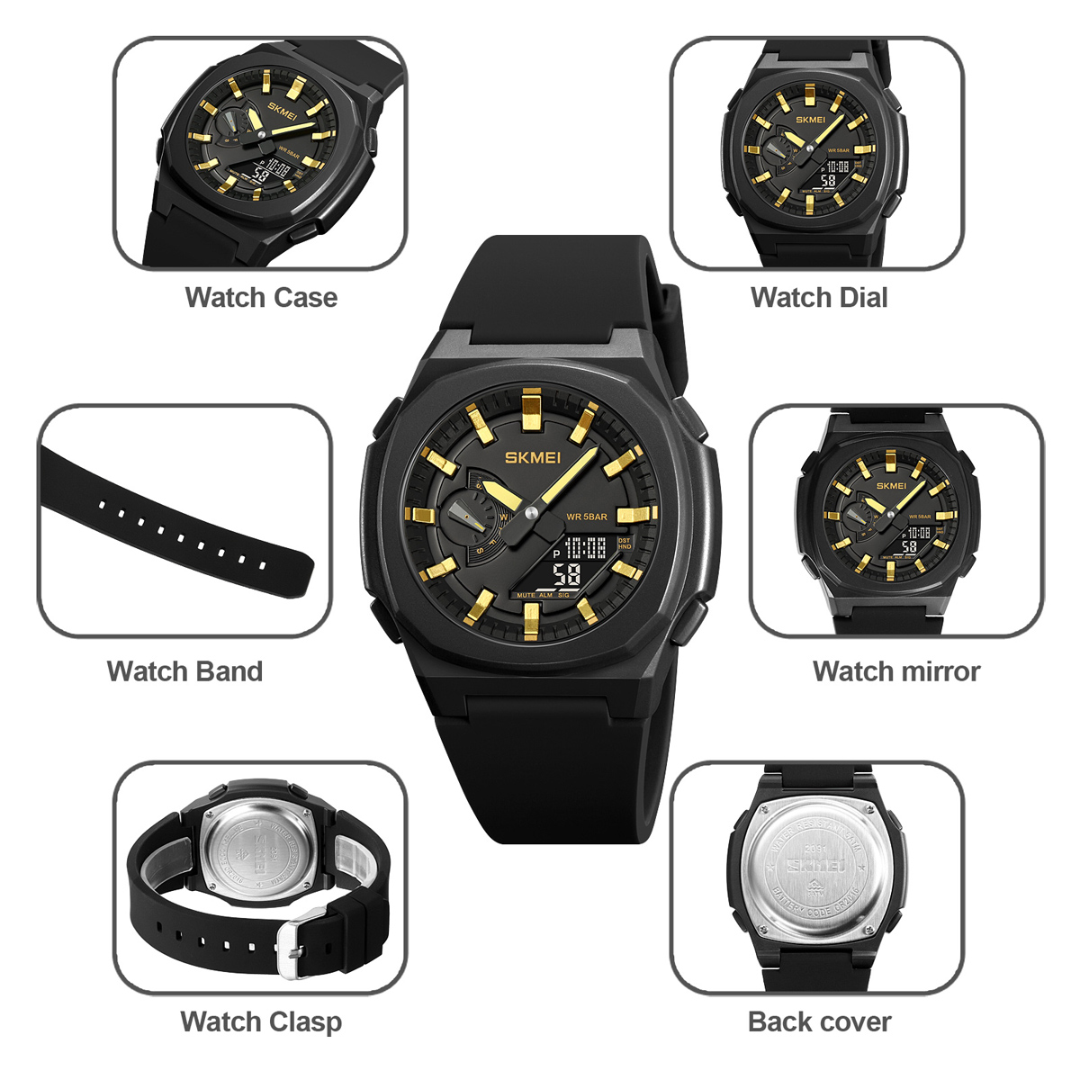 Designed for modern men, this dual display sports watch for men marries analog elegance with digital versatility. Its stylish profile suits both active and casual settings.