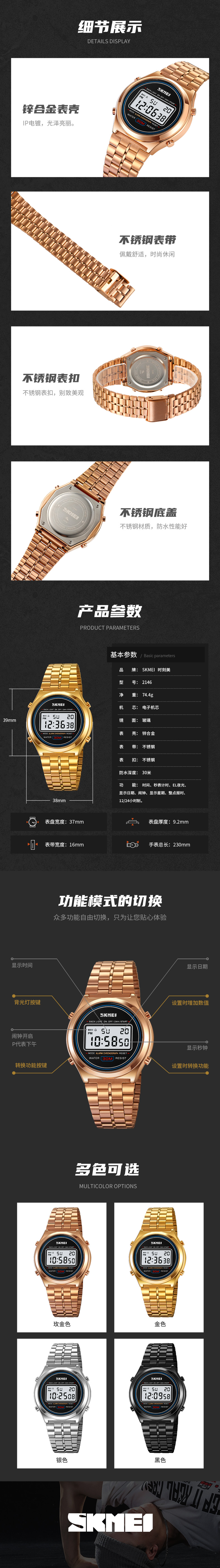 With stopwatch, countdown timer, alarm, hourly chime, and a full auto calendar, the SKMEI 2146 packs serious versatility into a simple interface. Every feature is designed for quick access and accuracy on the go.