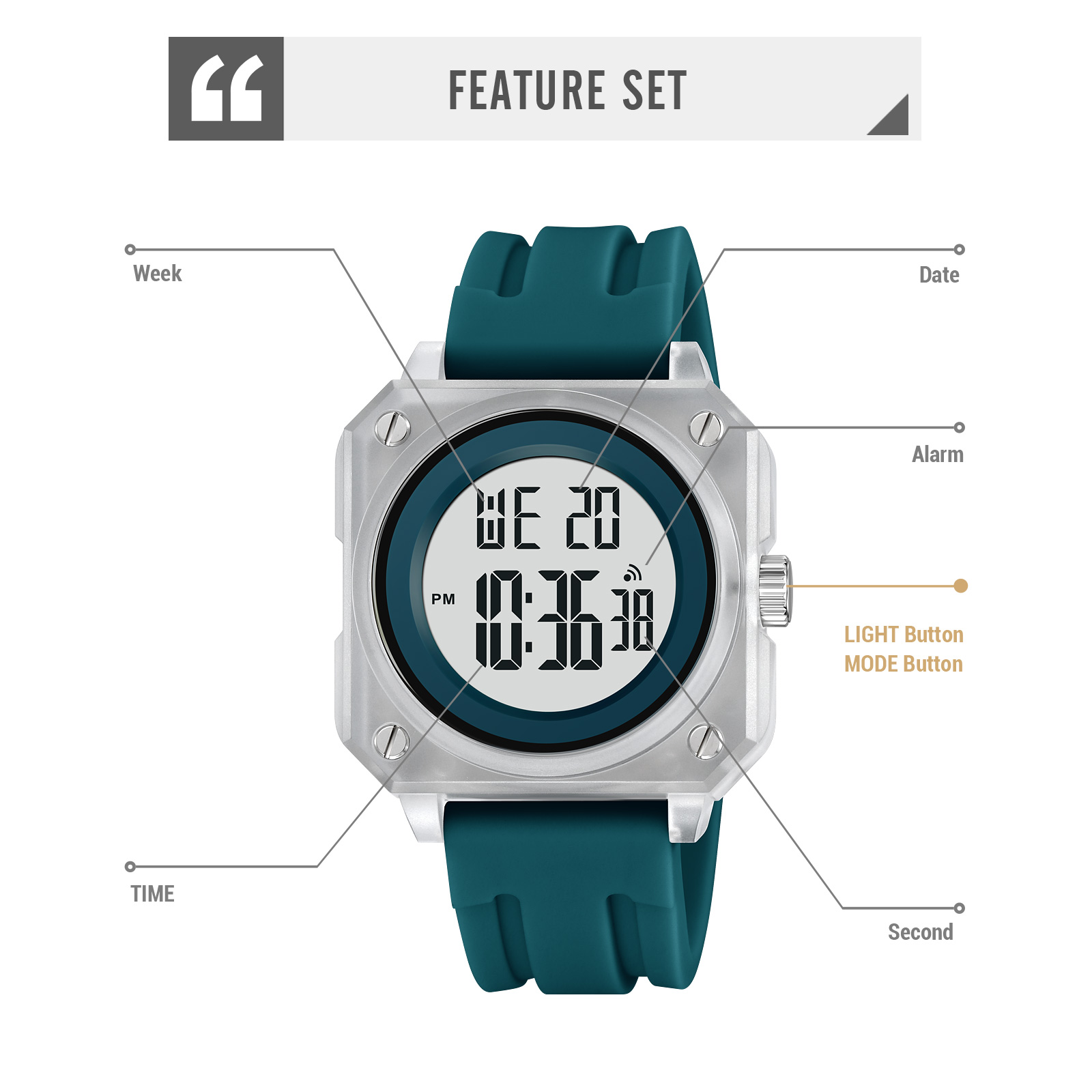 With 50 meters of resistance, this 50m water resistant wrist watch withstands rain, splashes, and swimming. It is an ideal companion for water sports, camping, and daily use in all weather conditions.