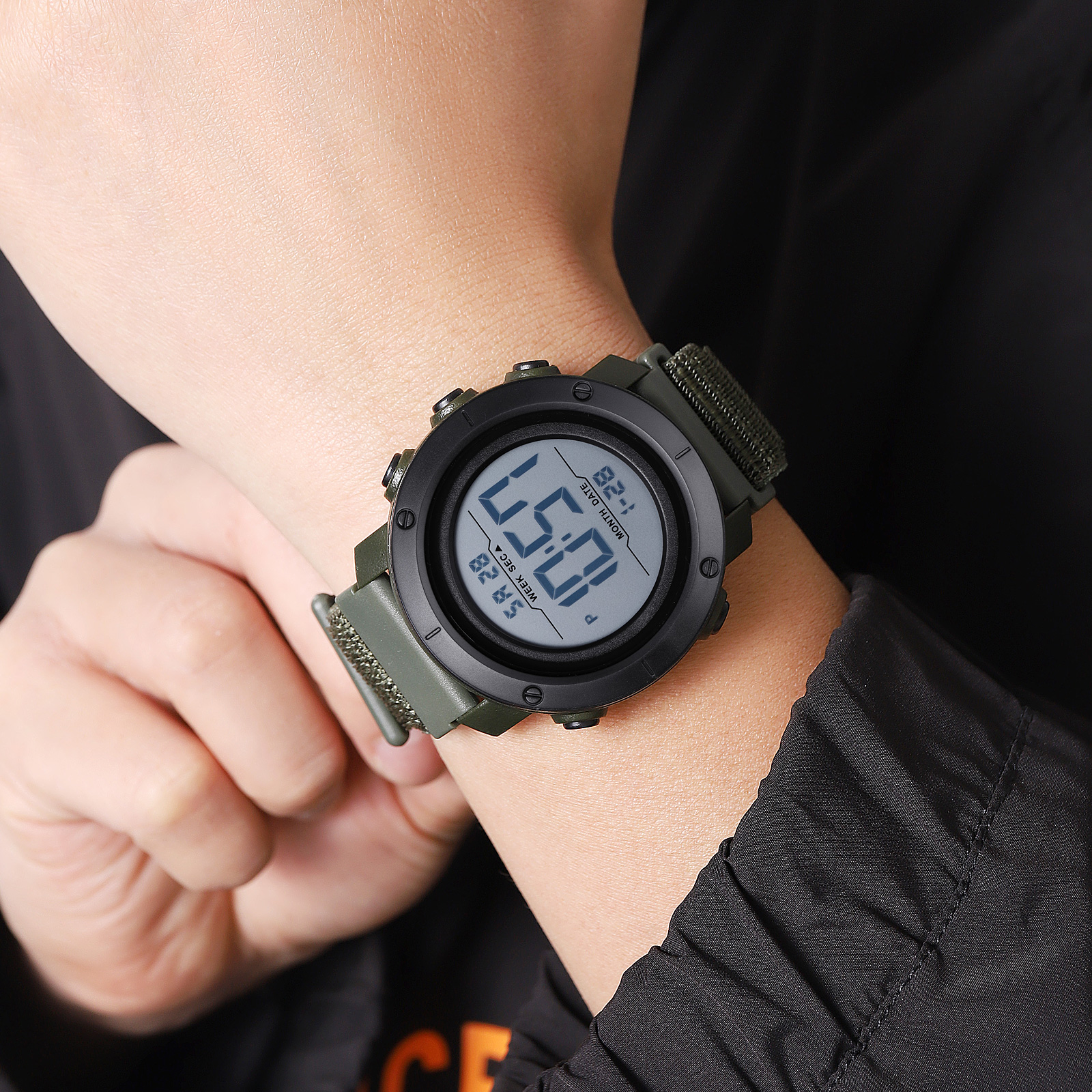 The 22mm TPU/nylon strap adjusts to 17-24cm wrists, offering breathable support for extended wear. This setup complements the 50m water resistance, suitable for splashes and sweat in best budget digital watch for outdoor activities.