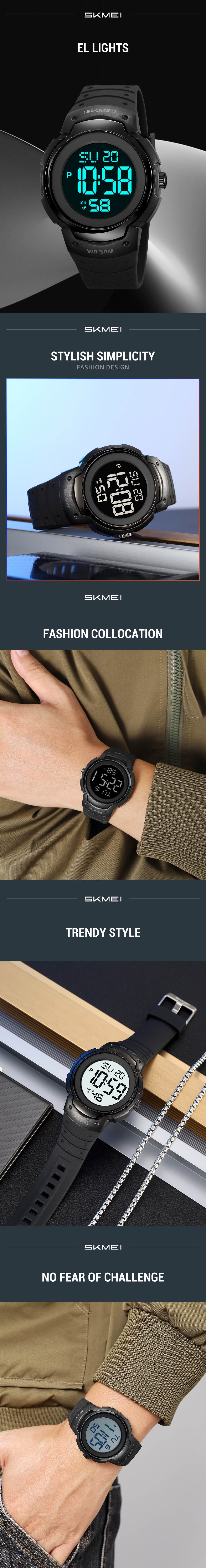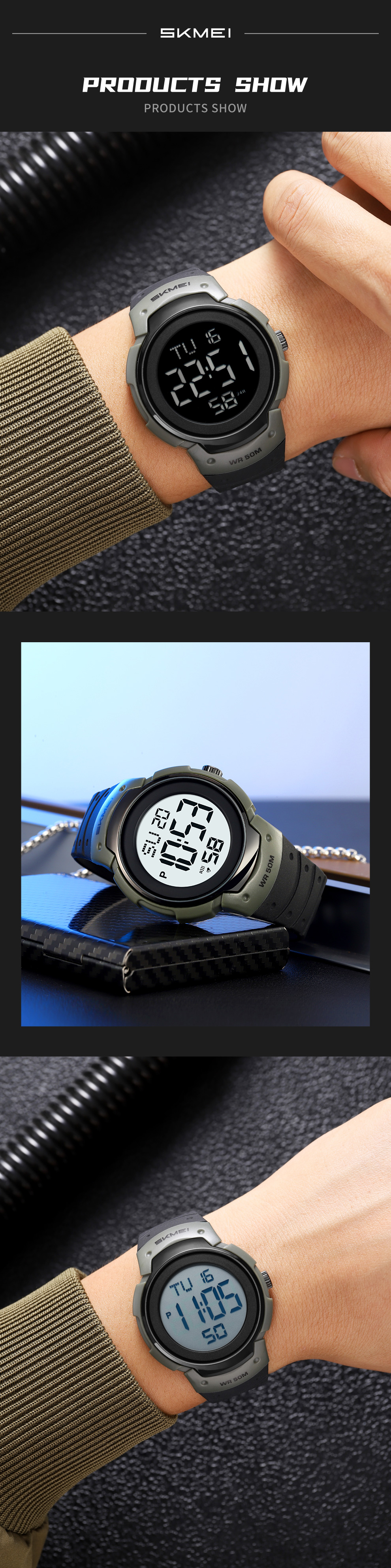 The SKMEI 2527 features a high-quality LCD display, enhanced with a backlight function that allows for easy reading in low-light environments. Whether you’re out at night or in a dimly lit room, this digital watch with backlight ensures optimal visibility, making it the ideal watch for those who engage in night sports or activities.