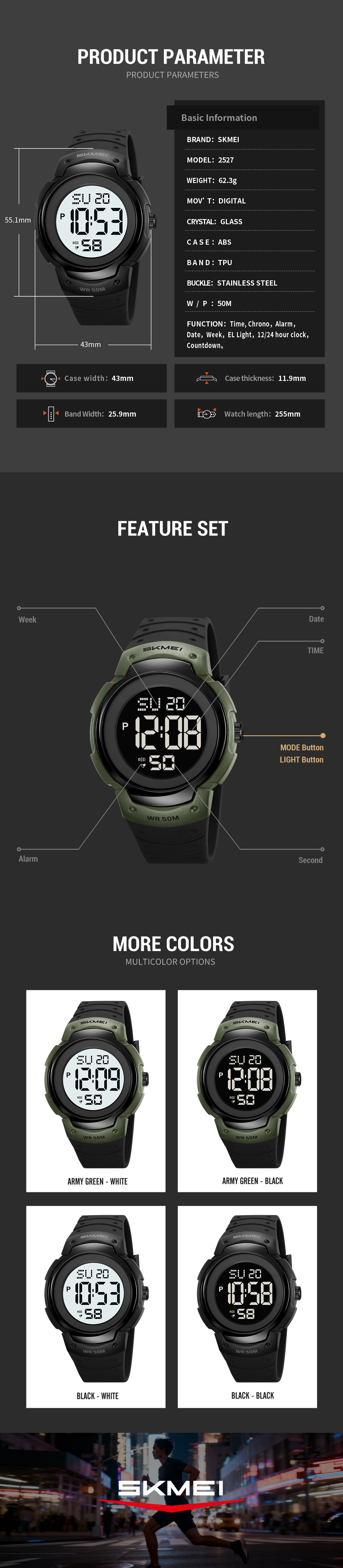 The SKMEI 2527 digital watch offers a perfect blend of durability, style, and functionality, making it a great choice for those seeking a shockproof digital wristwatch. Whether you’re out for a run or attending a casual gathering, this watch provides great value with its waterproof capabilities and practical features.