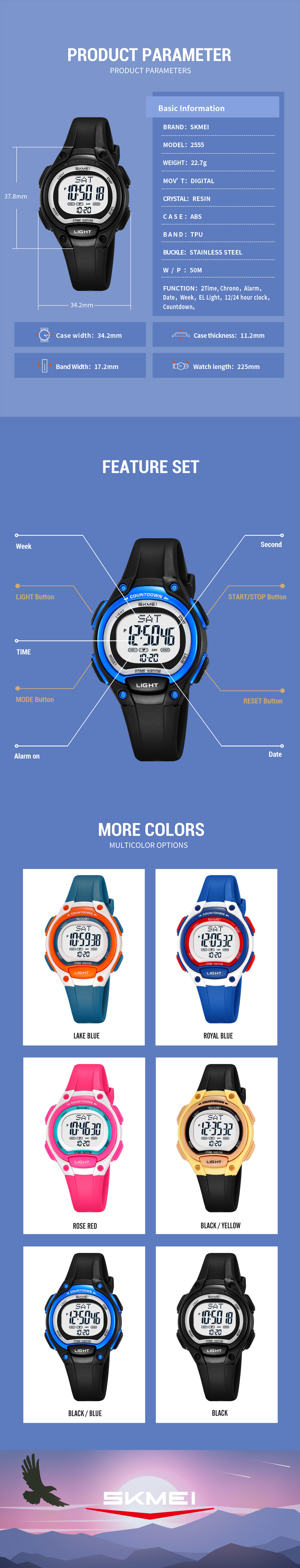 The SKMEI 2555 watch is a compact and reliable digital model designed for everyday use. As a 50m water resistant watch, it suits active users seeking simple utility.Durable Build Quality