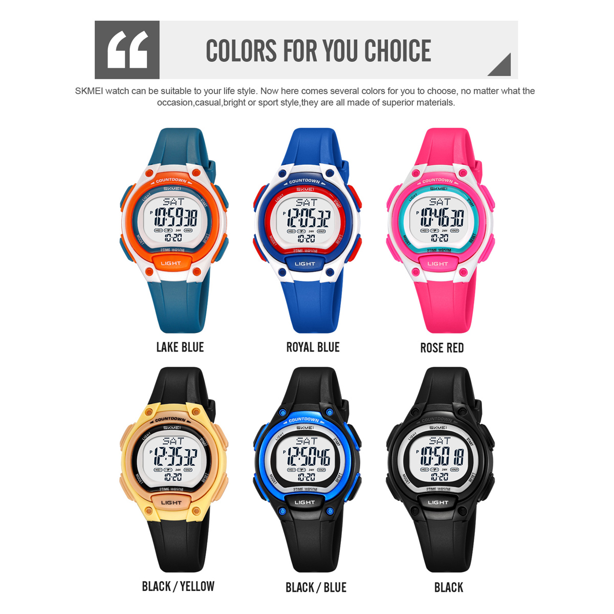 Engineered as a kids waterproof wristwatch, the SKMEI 2555 provides dependable 5 BAR water resistance, making it safe for swimming, splashes, and rainy-day wear.Clear and Bright EL Backlight