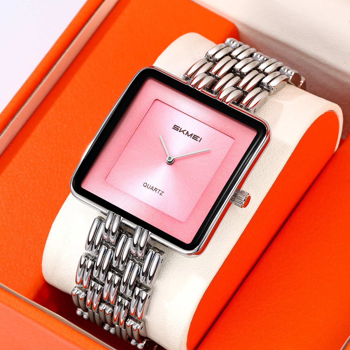 This slim square analog daily watch pairs a minimalist dial with a compact case, ideal for users seeking a modern square dress style watch for office and casual outfits.