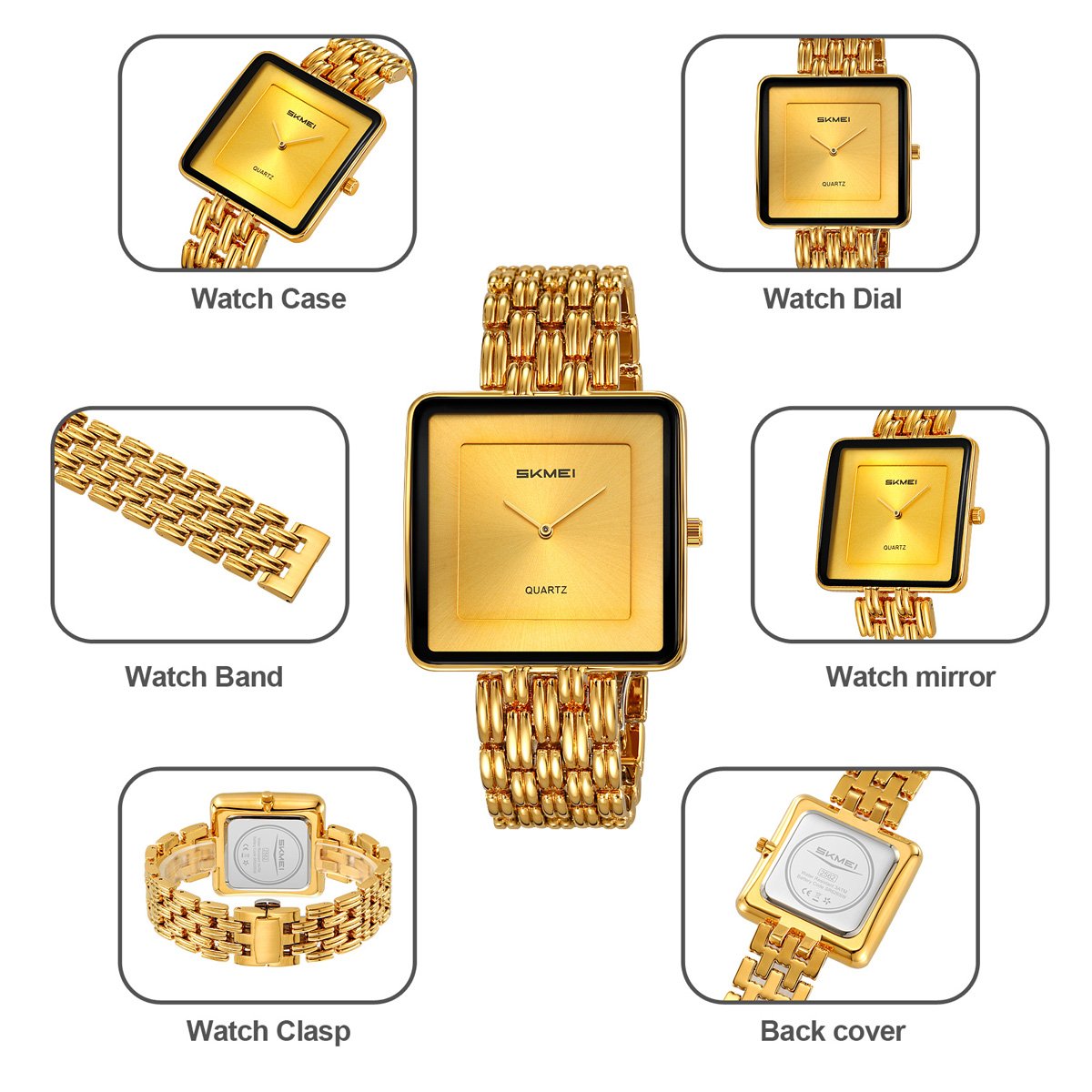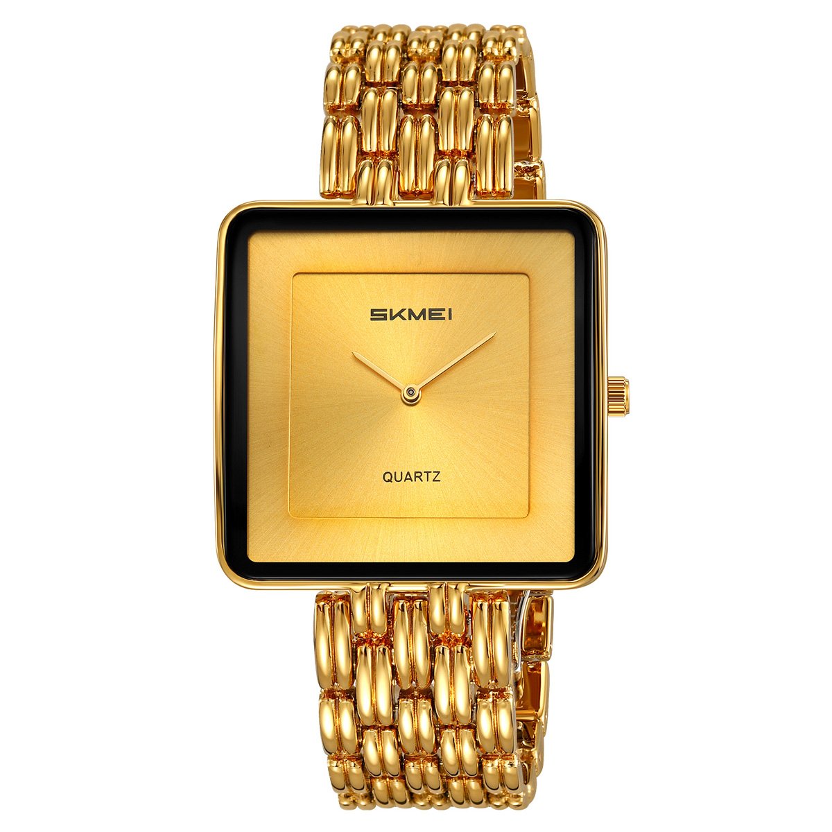 The lightweight unisex metal watch case and bracelet suit slim to medium wrists, making this square everyday watch comfortable for both women and men during long wear.