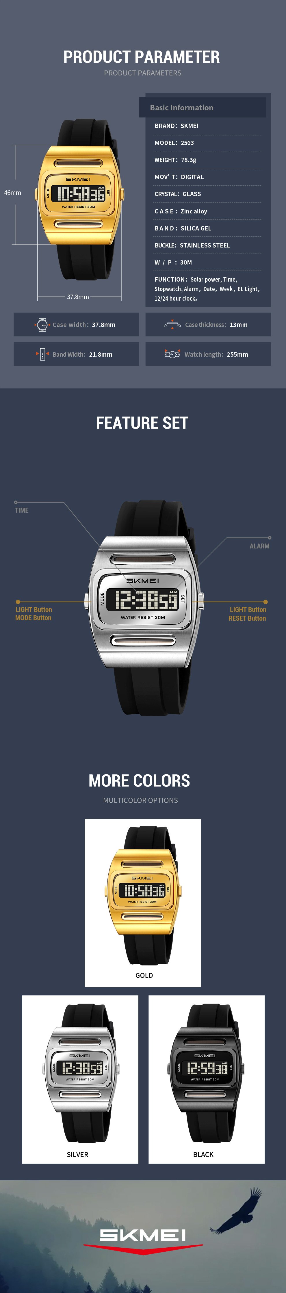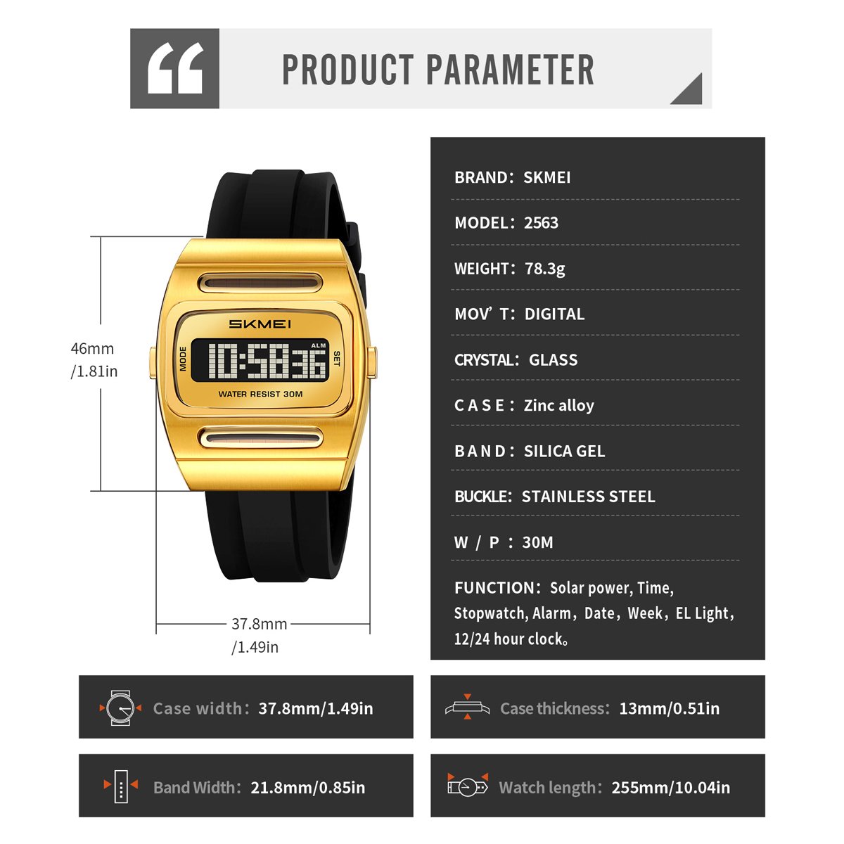 This solar power casual digital sport’s watch is a practical gift for men who want a unique rectangle digital watch for daily use.