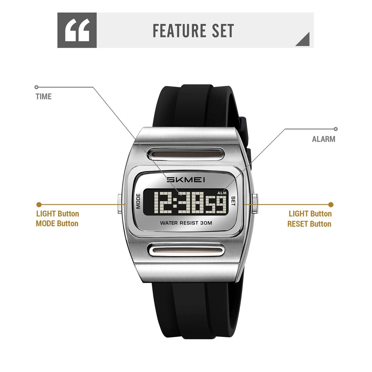 This men’s digital sports watch offers 30 meters waterproof performance for hand washing, rain and everyday splash protection.
