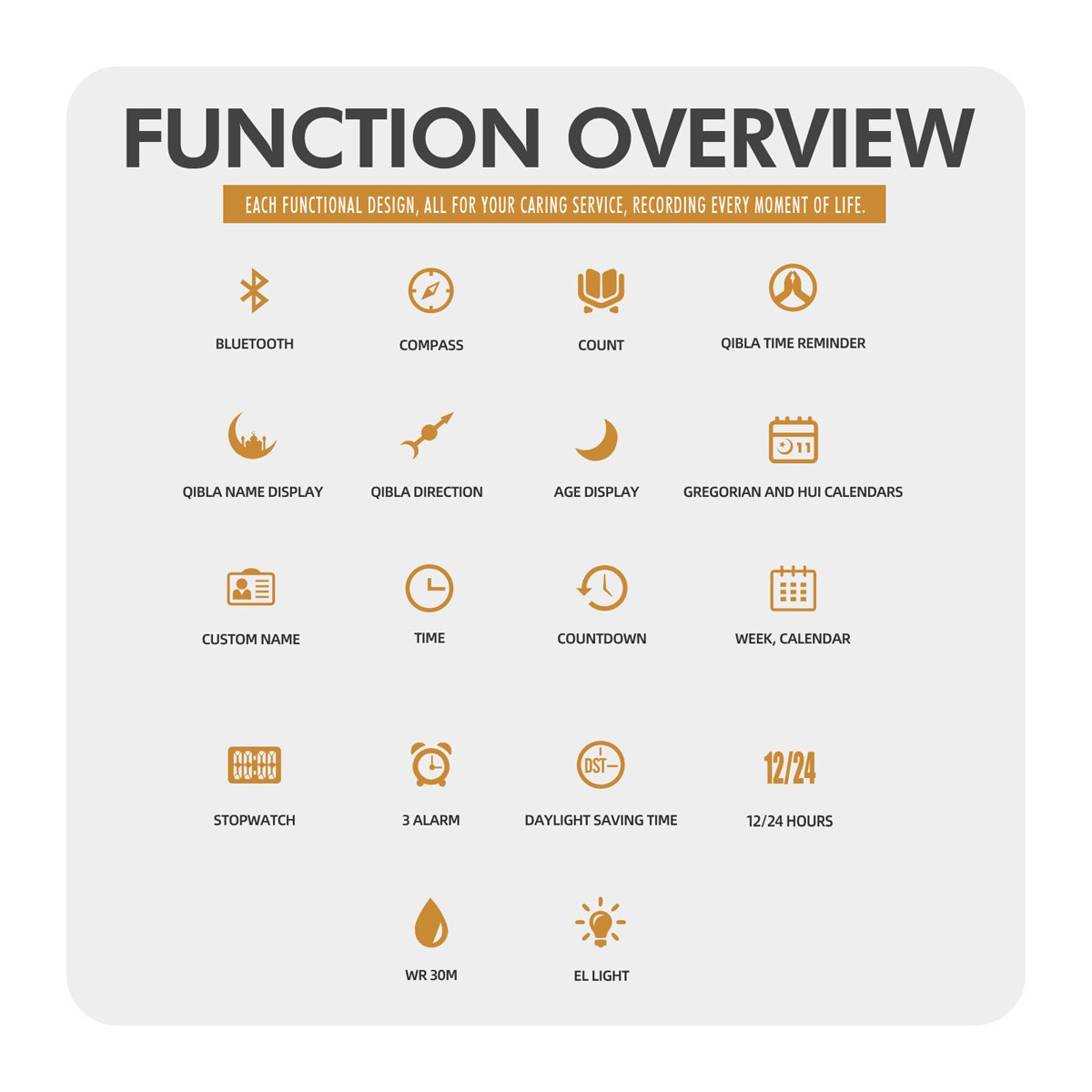 This watch includes three independent alarms plus time mode flexibility. An EL backlight ensures visibility in low‑light conditions, useful for early morning or late‑night activities.Compass, Qibla & Prayer Reminders