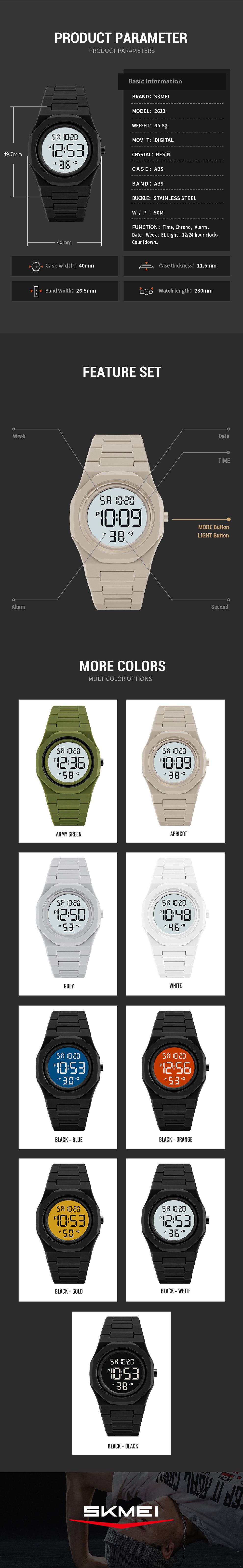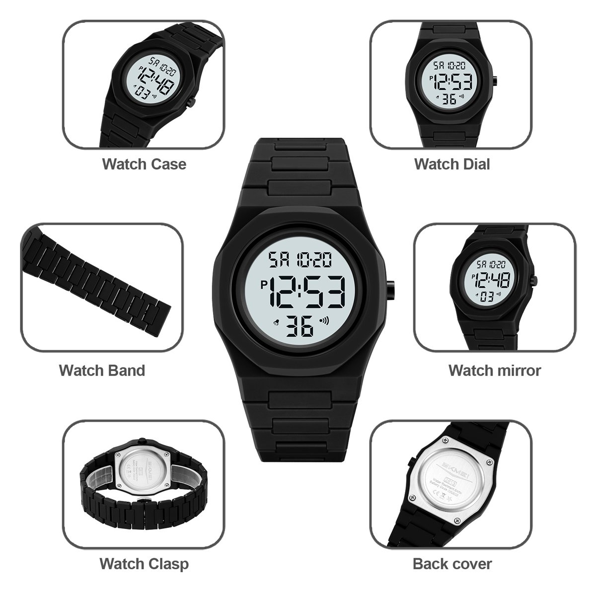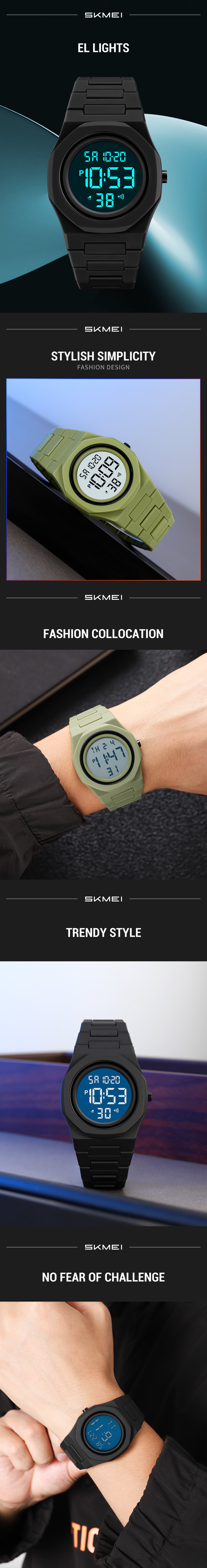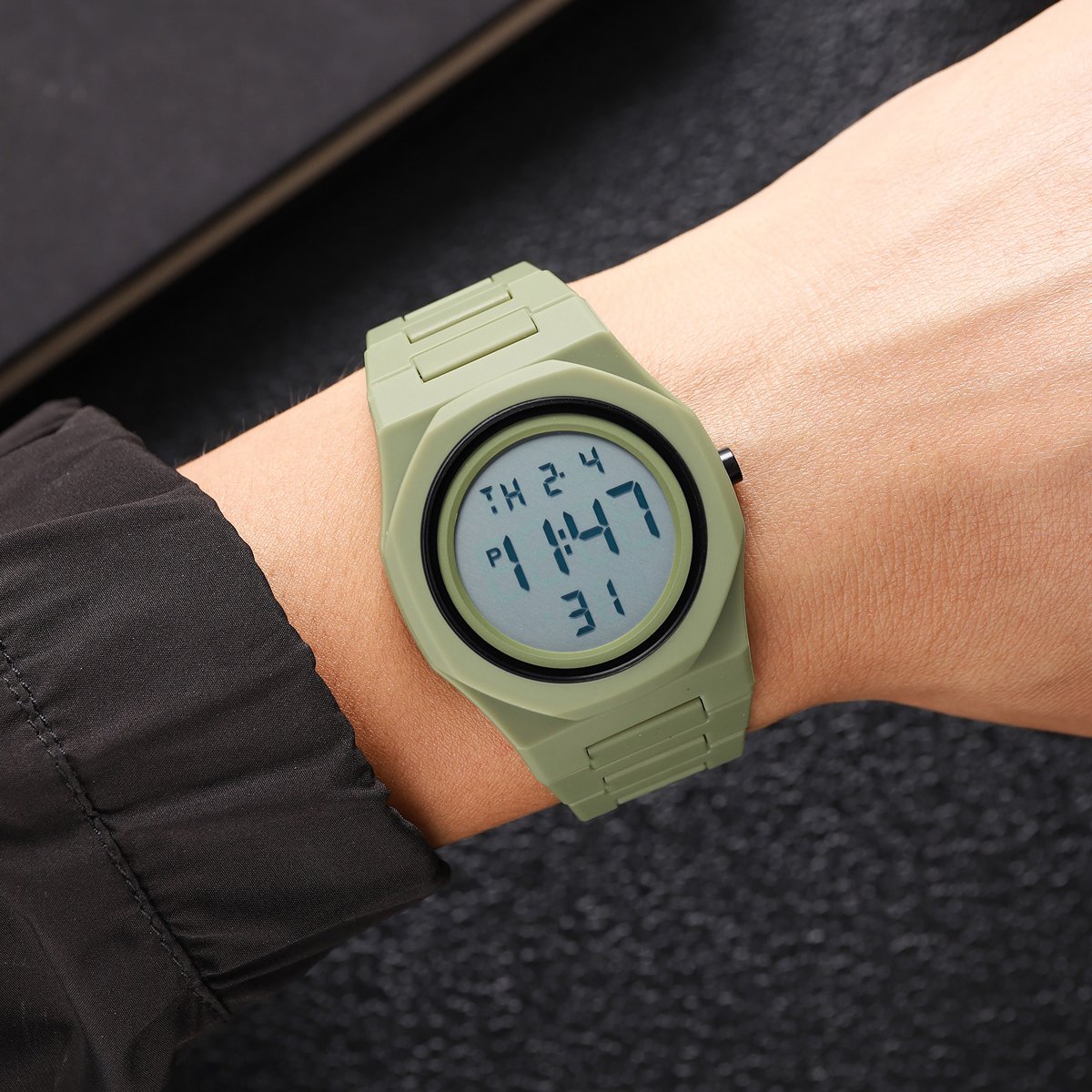 As a cheap waterproof digital watch with 50m rating, it handles rain, hand washing and light splashes in everyday city and campus life.