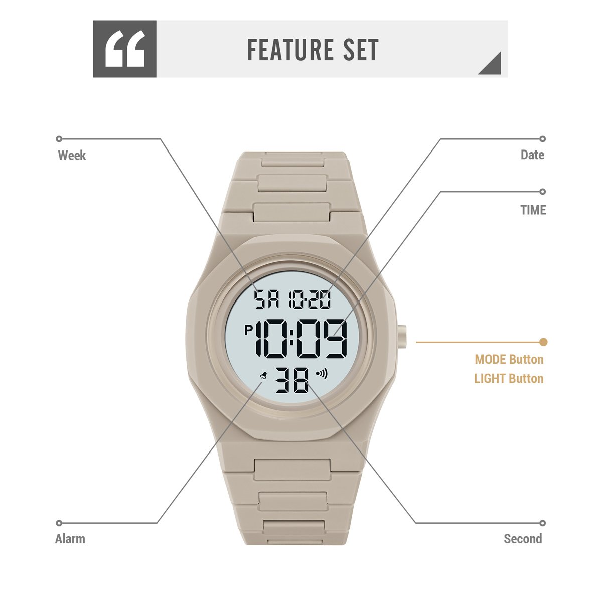 With a clean layout and intuitive buttons, this simple digital sports watch is quick to set and read even for first time digital users.