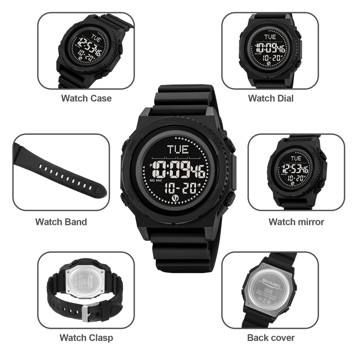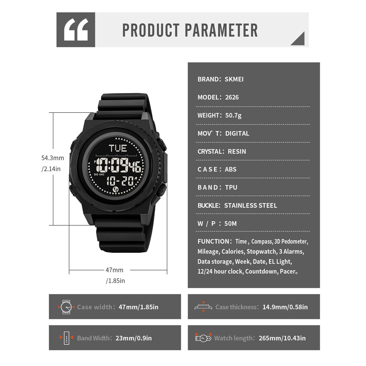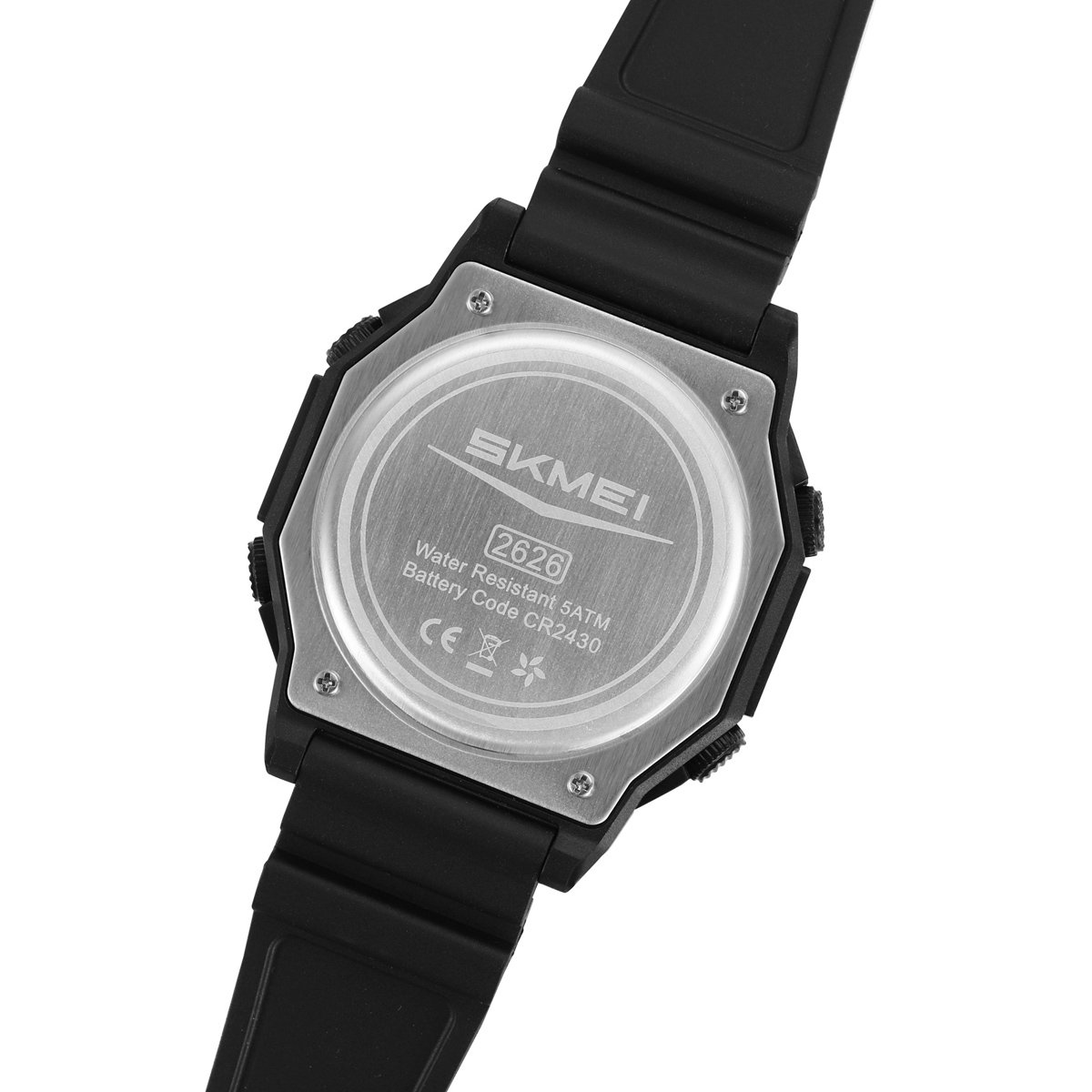 With a 54.3 mm large face and ABS + TPU case construction, SKMEI 2626 withstands outdoor shocks and remains easy to read during activities.