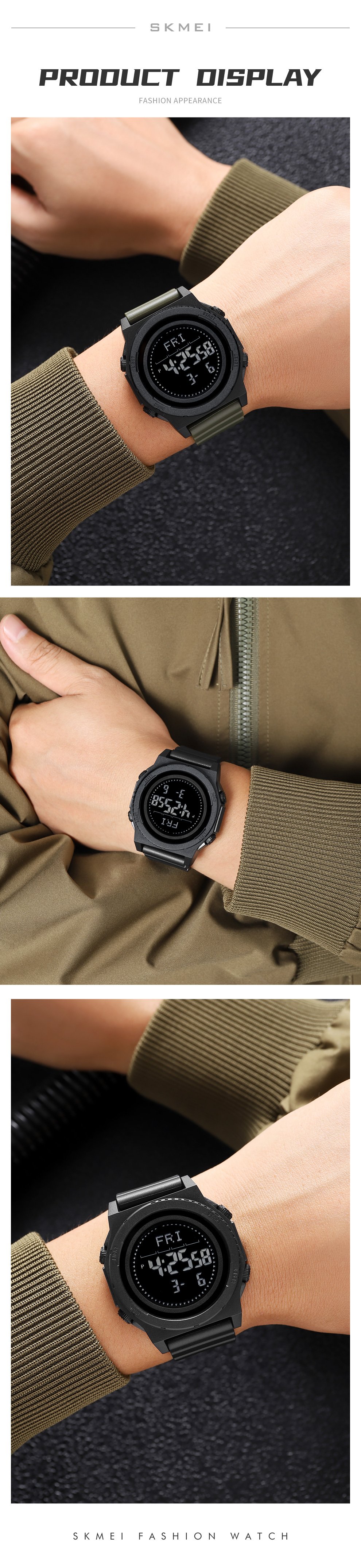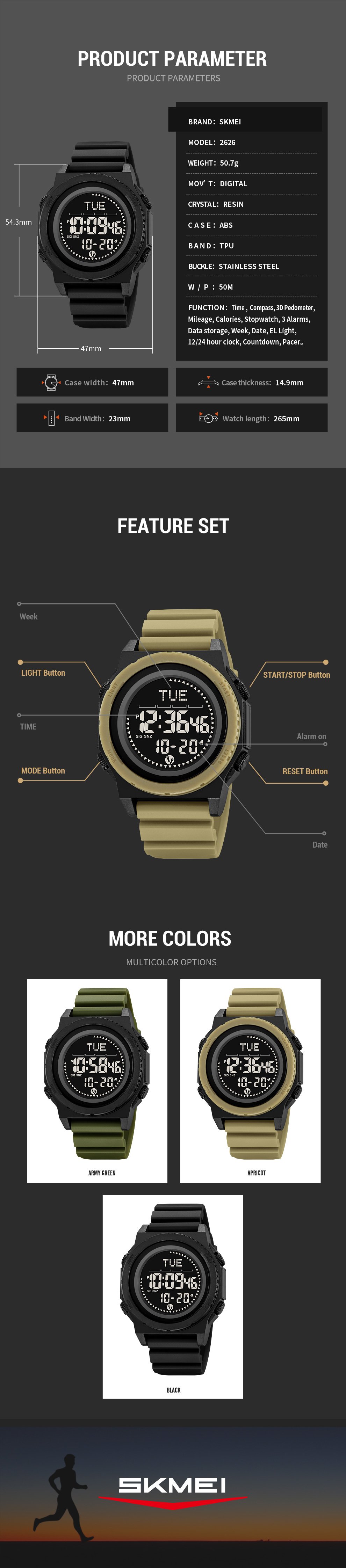 The SKMEI 2626 is a rugged digital watch ideal for outdoor sports, gym sessions, or tactical use. It combines fitness tracking and essential watch functions in one durable, affordable timepiece.