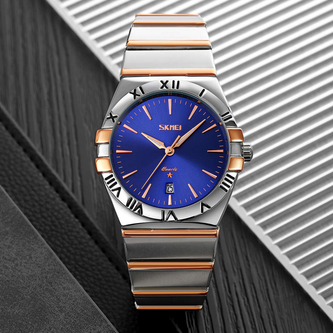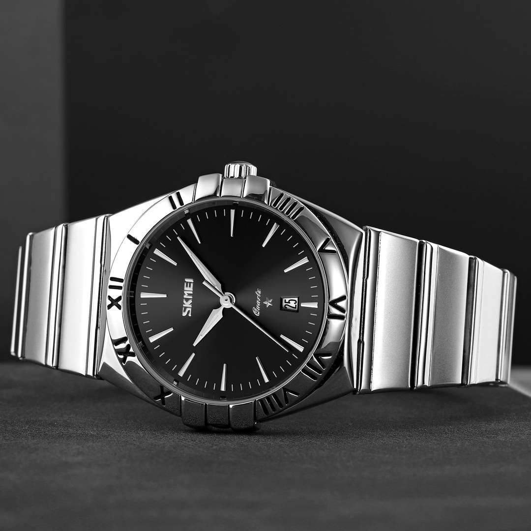 The SKMEI 9257 is a standout mens business watch crafted for professionals who value style and precision. With a 39mm zinc alloy case and stainless steel design, it delivers durability and sophistication. Its quartz movement ensures accurate timekeeping, while the 3 ATM water resistance feature protects against splashes, making it a reliable choice for daily wear. The Roman numeral date display adds a refined touch, ideal for both office settings and casual outings.