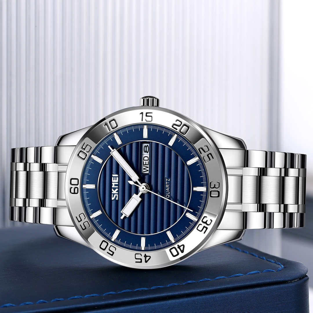 Elevate your wrist game with the SKMEI 9293 men’s quartz watch, a perfect blend of sophistication and functionality. Crafted for the modern man, this stainless steel quartz watch combines a sleek 41mm dial with a robust zinc alloy case, making it ideal for both business meetings and casual outings. Its precise quartz movement ensures reliable timekeeping, while the water resistant men’s watch withstands daily splashes with a 3ATM rating.
