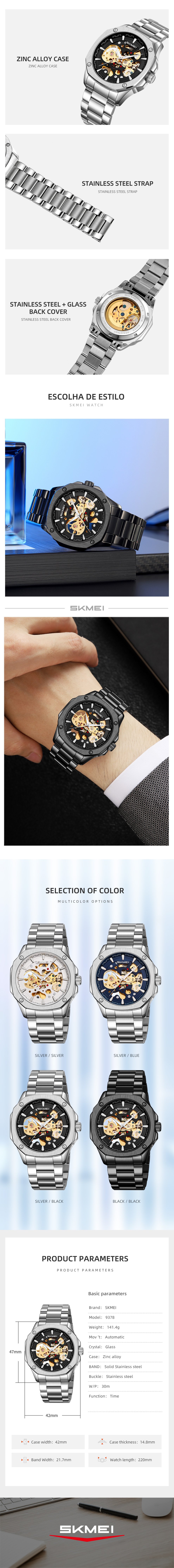 This skeleton dial men’s watch reveals the mechanical beauty inside, creating a refined luxury business mechanical watch for daily office and evening events.
