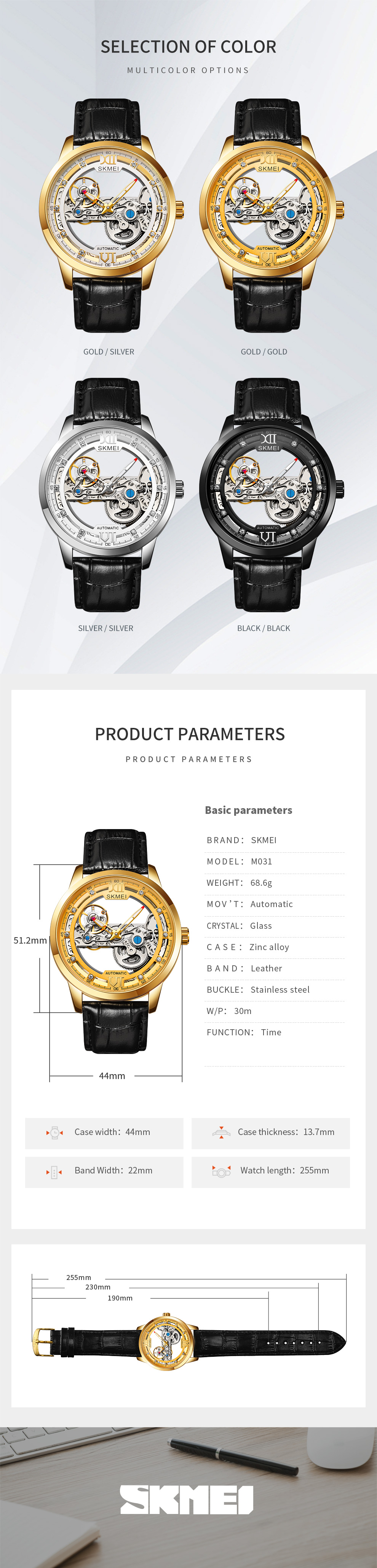 The SKMEI M031 stands out as a men’s skeleton watch that merges modern aesthetics with classic watchmaking. Whether as part of a personal collection or as a statement piece, it delivers the authenticity and charm of traditional mechanics at an accessible price point.