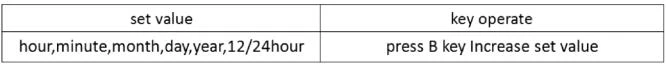 - In the time display mode,press A key to enter time setting mode, the hours will flash. Due to the structure problem, it is better to adjust the A key via tool.