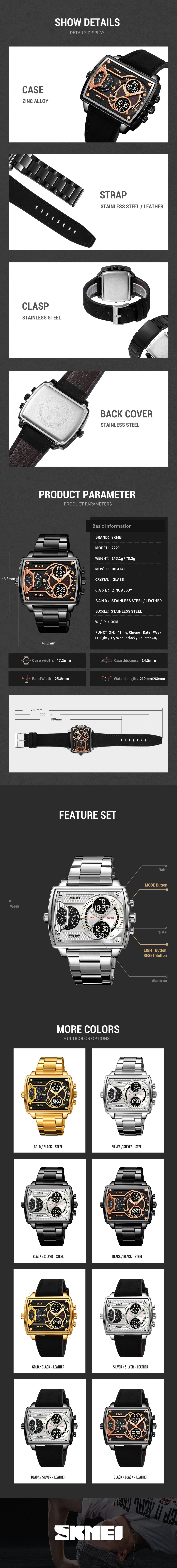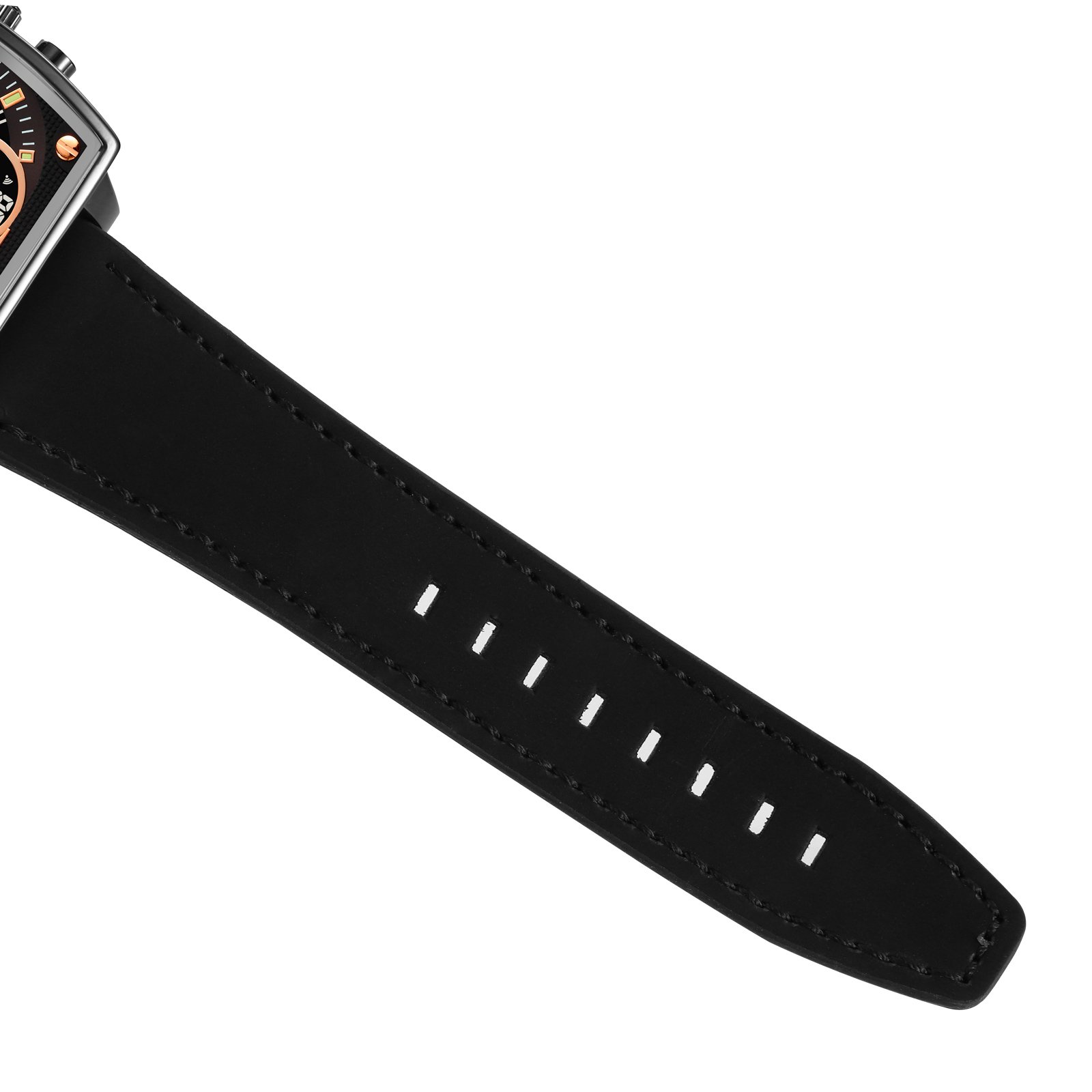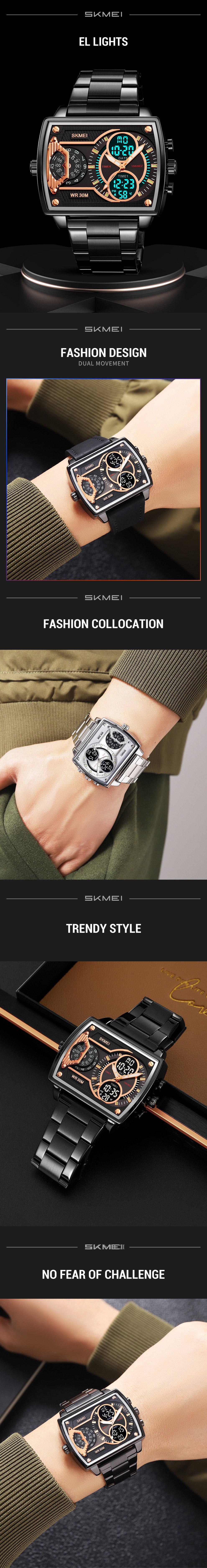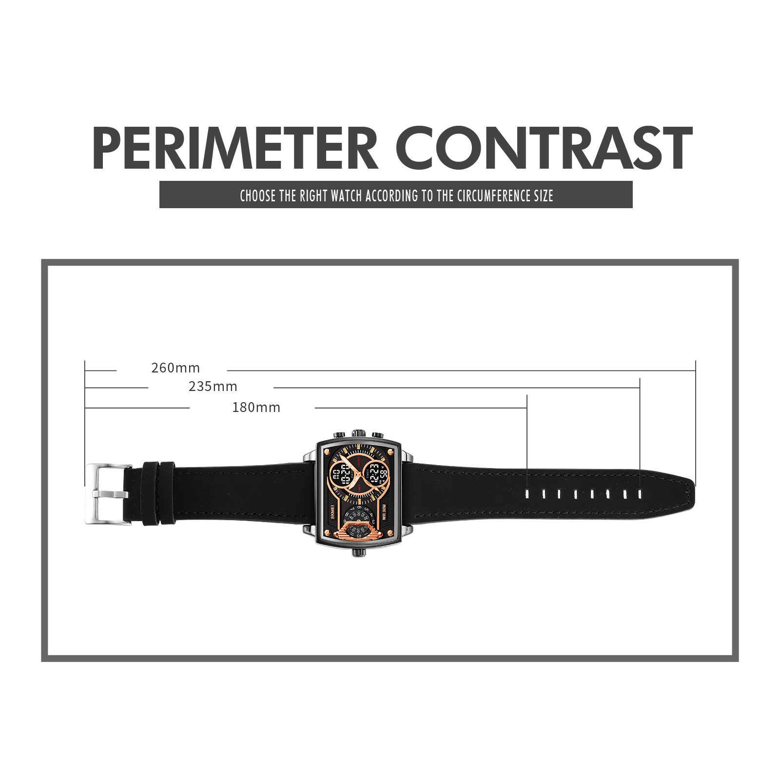 An alloy case around 47.2 mm wide pairs with either a steel or leather band, creating a mens square dial watch that fits both office and casual looks.