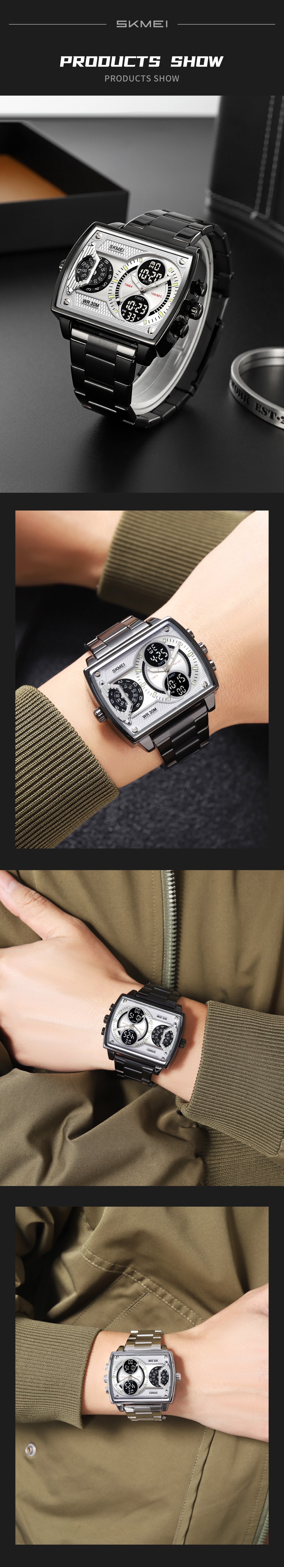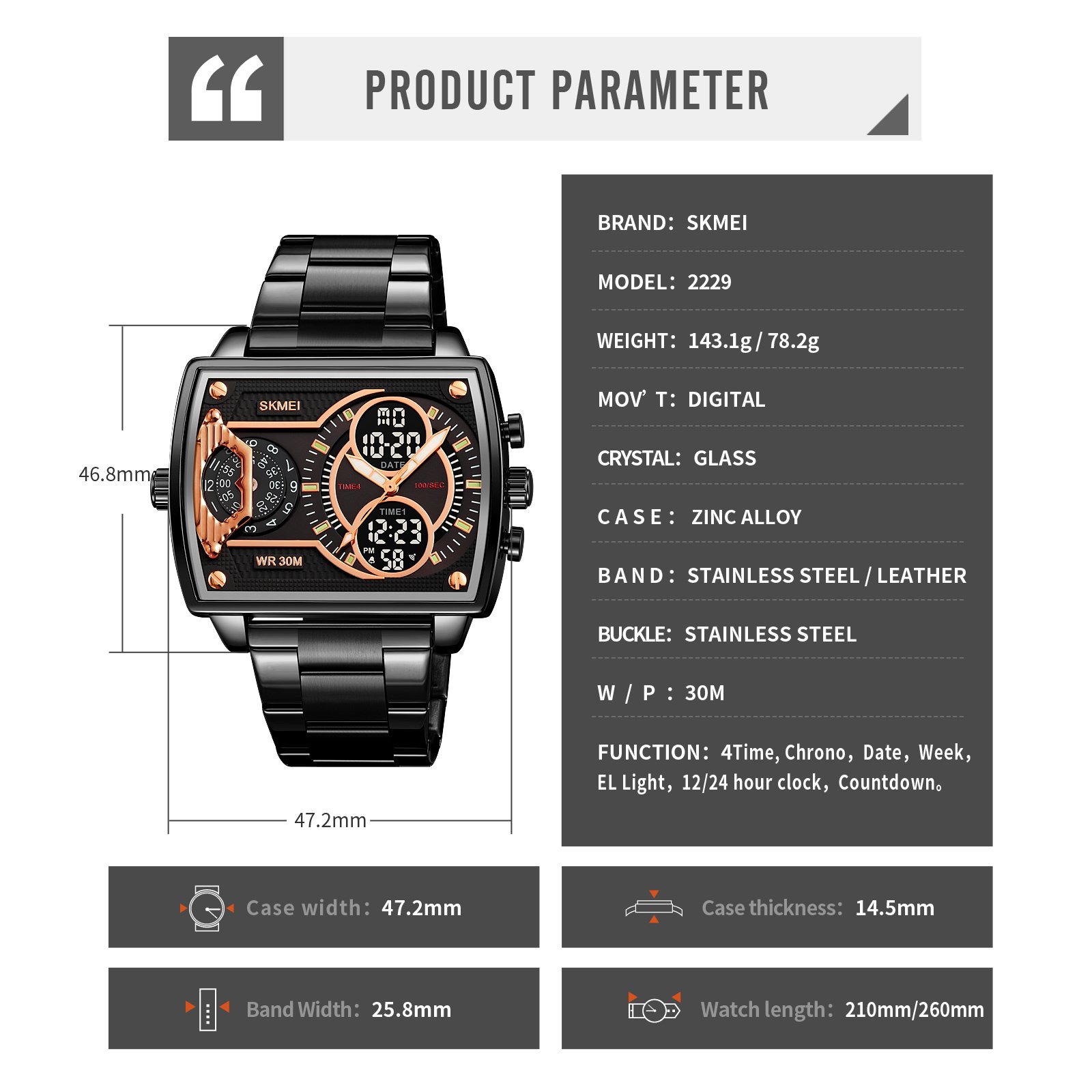 Supplied in SKMEI factory packaging, this watch offers four time displays and LED backlight, giving a practical option for travelers who want clear multi time tracking.