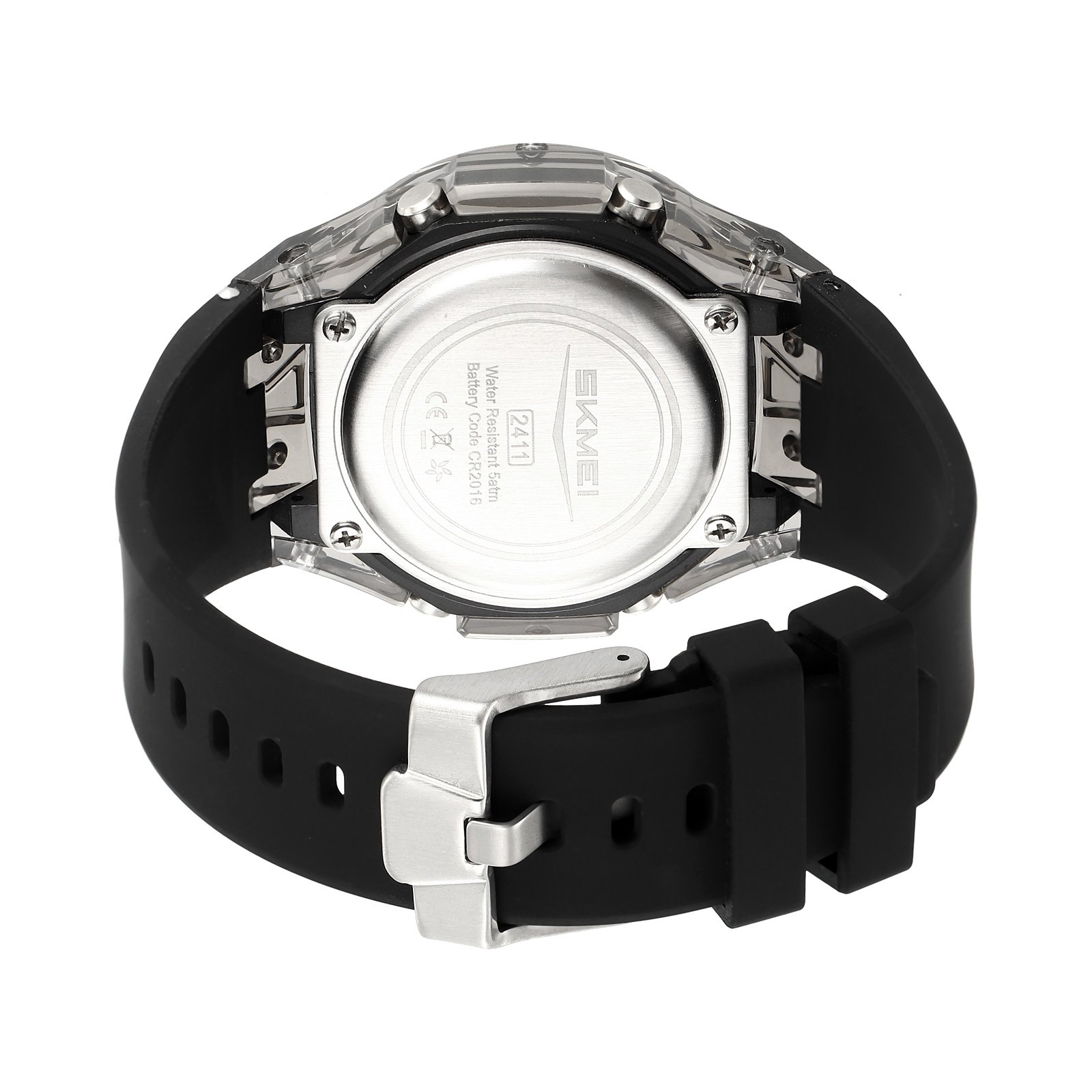 The sport analog digital watch uses a CR2016 battery and optional power‑saving mode to support regular timekeeping and alarms over extended use.