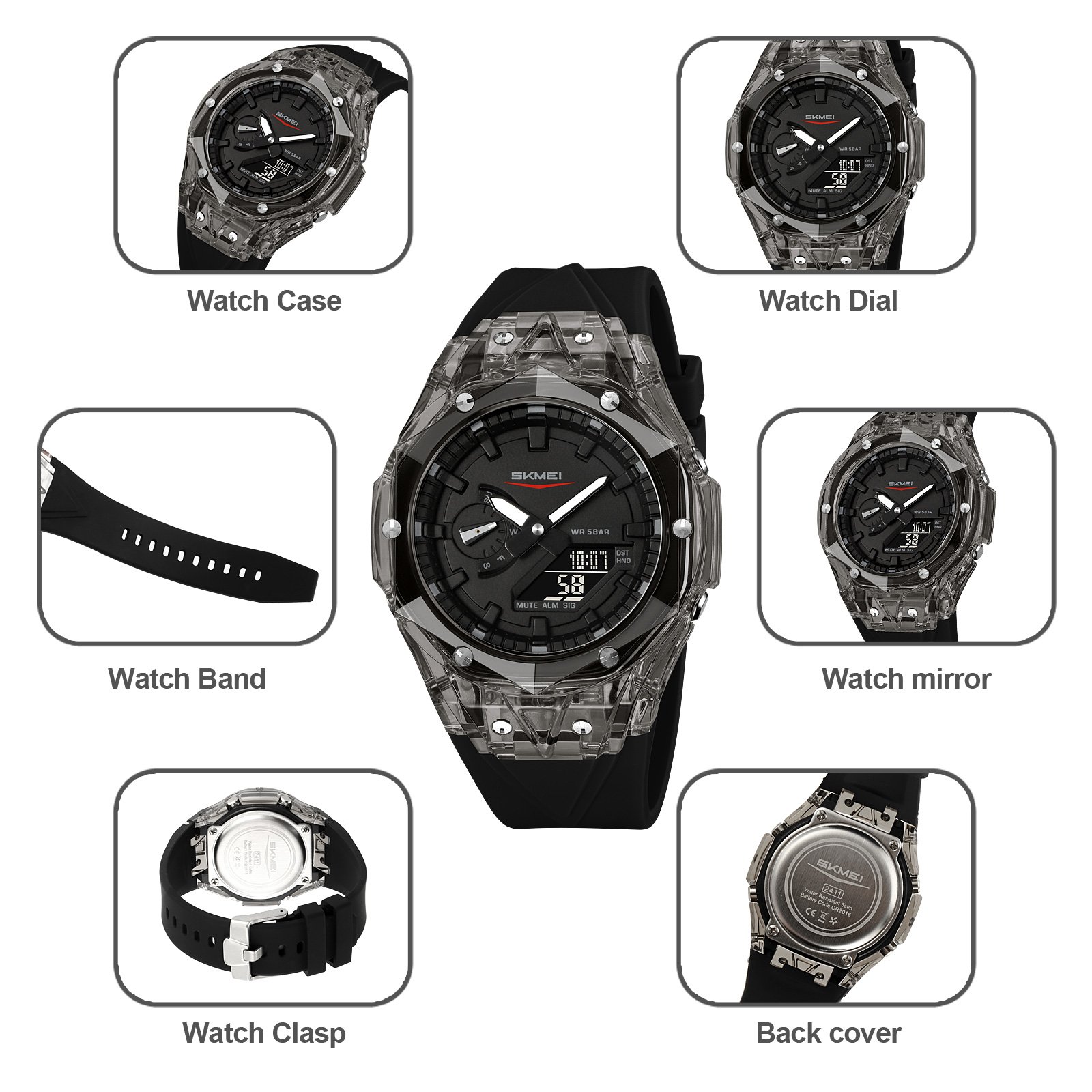 This sport analog digital watch combines a 45.3 mm round case with an easy‑to‑read dual display for daily and sport use.