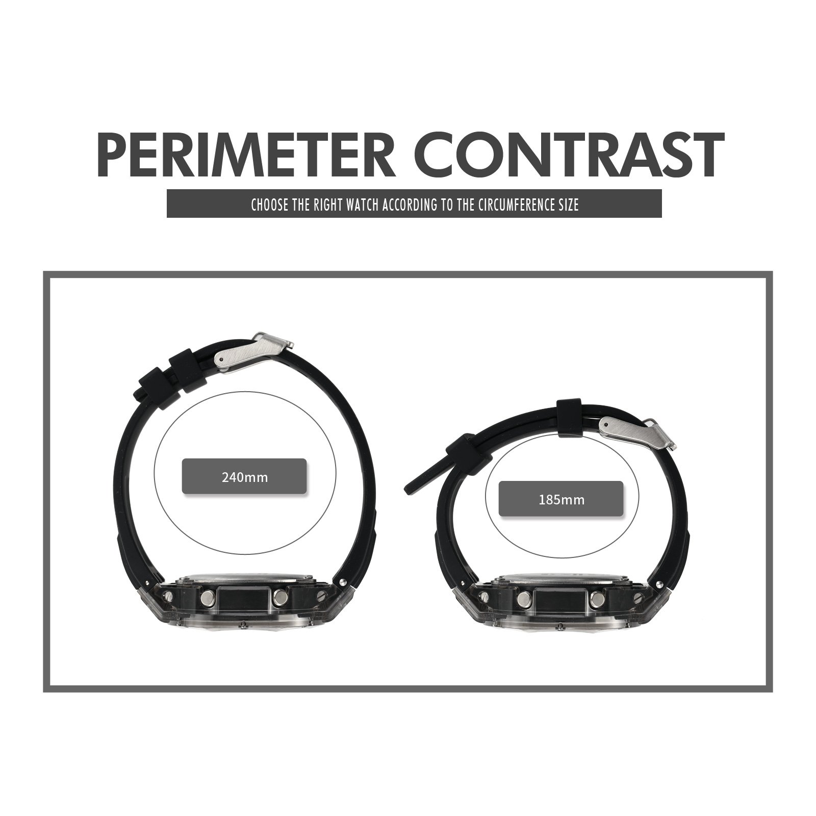 The 45.3 mm case and clear resin window create a 45mm large face watch look that makes time and functions simple to check at a glance.