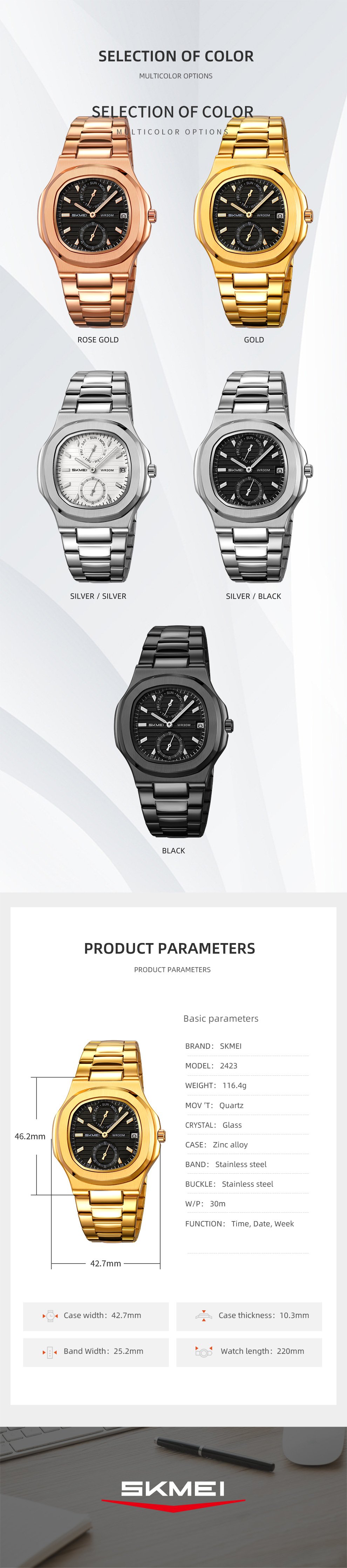 SKMEI 2423 square dial dress watch choice