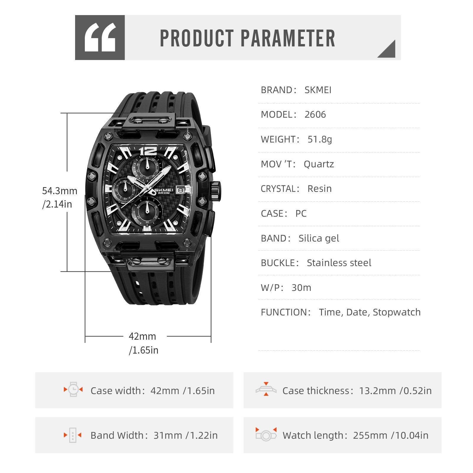Overview of SKMEI 2606 accurate quartz movement watch